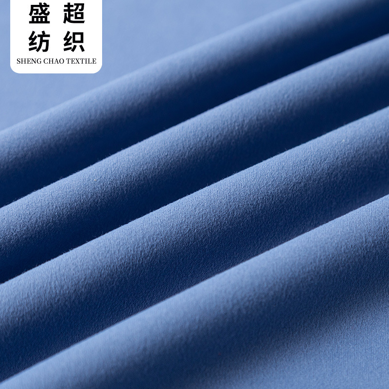 SHENGCHAO 涤纶氨纶双面单磨毛面料是专为高级瑜伽服和运动服而设计的。它具有光滑的磨毛表面,具有出色的弹性、透气性、抗皱性和持久的保色性,是运动服装的理想选择。